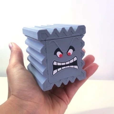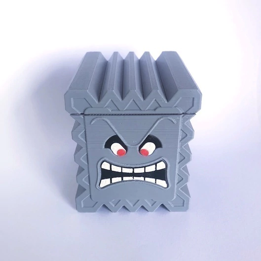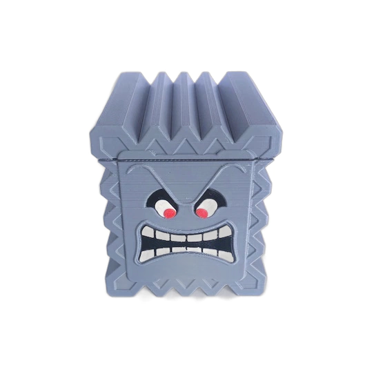 Design exclusivo com referência ao Thwomp, personagem icônico do mundo Mario
