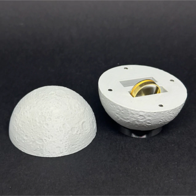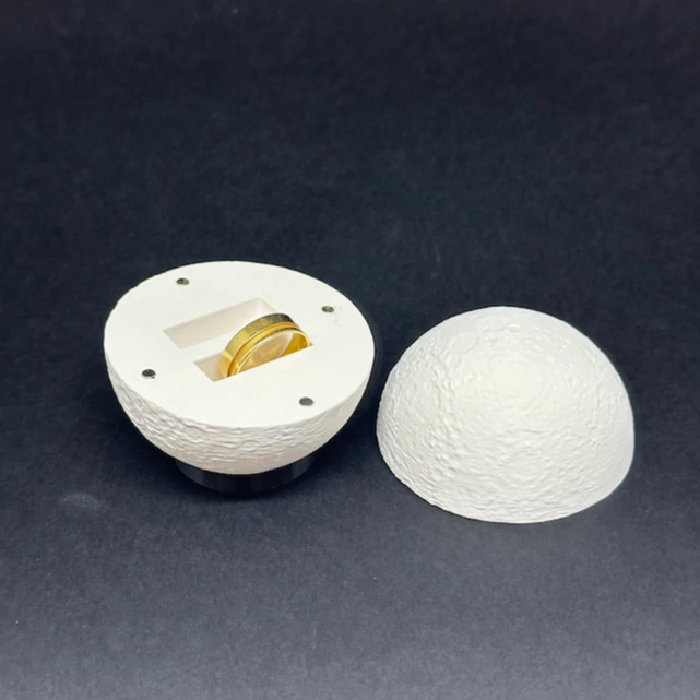 Com formato de lua cheia, este porta alianças é perfeito para casais que acreditam em conexões que vão além da Terra — é ideal para noivados, pedidos românticos ou cerimônias com um toque de magia.
