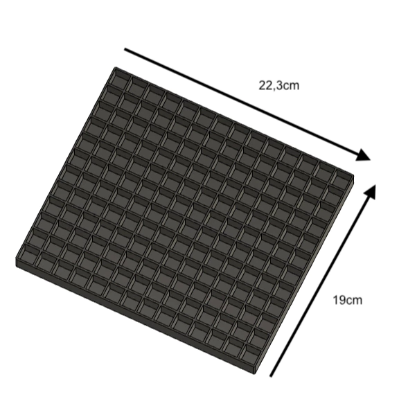 Suporte para 168 Canetas: 22,5cm x 19,3cm x 1,5cm