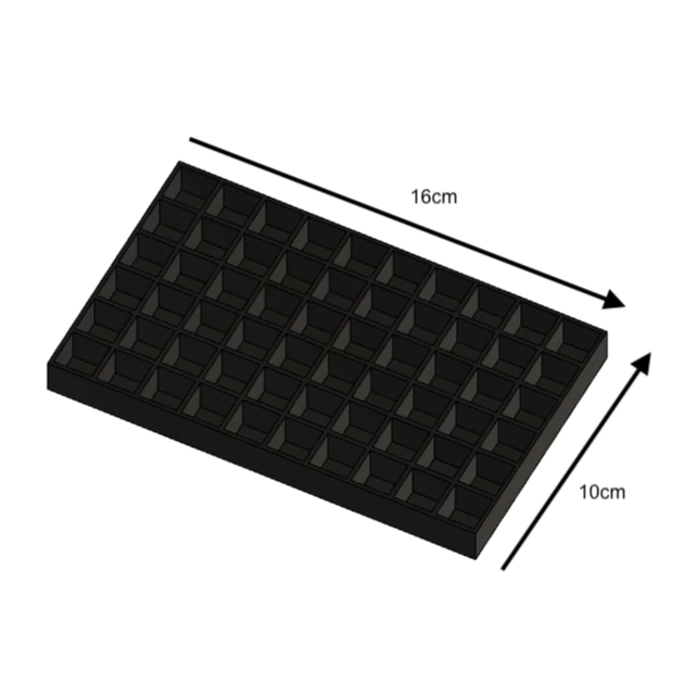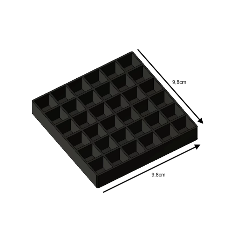 Suporte para 36 Canetas: 9,7cm x 9,7cm x 1,5cm