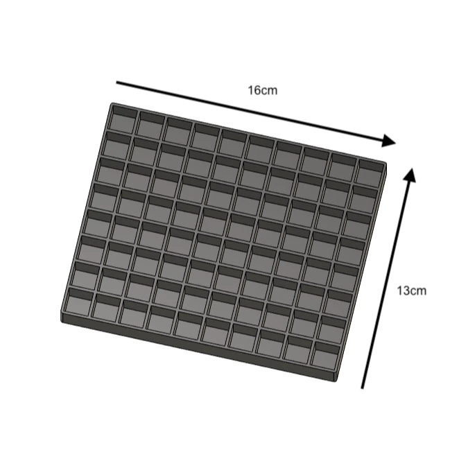 Suporte para 100 Canetas: 16,1cm x 16,1cm x 1,5cm